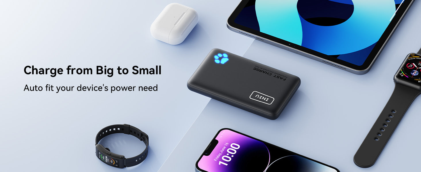 - [Industry First-Seen High-Density TinyCell]INIU's latest 10,000mAh power bank features the market's first high-density cell, making it 30% smaller and 15% lighter than others with the same capacity.