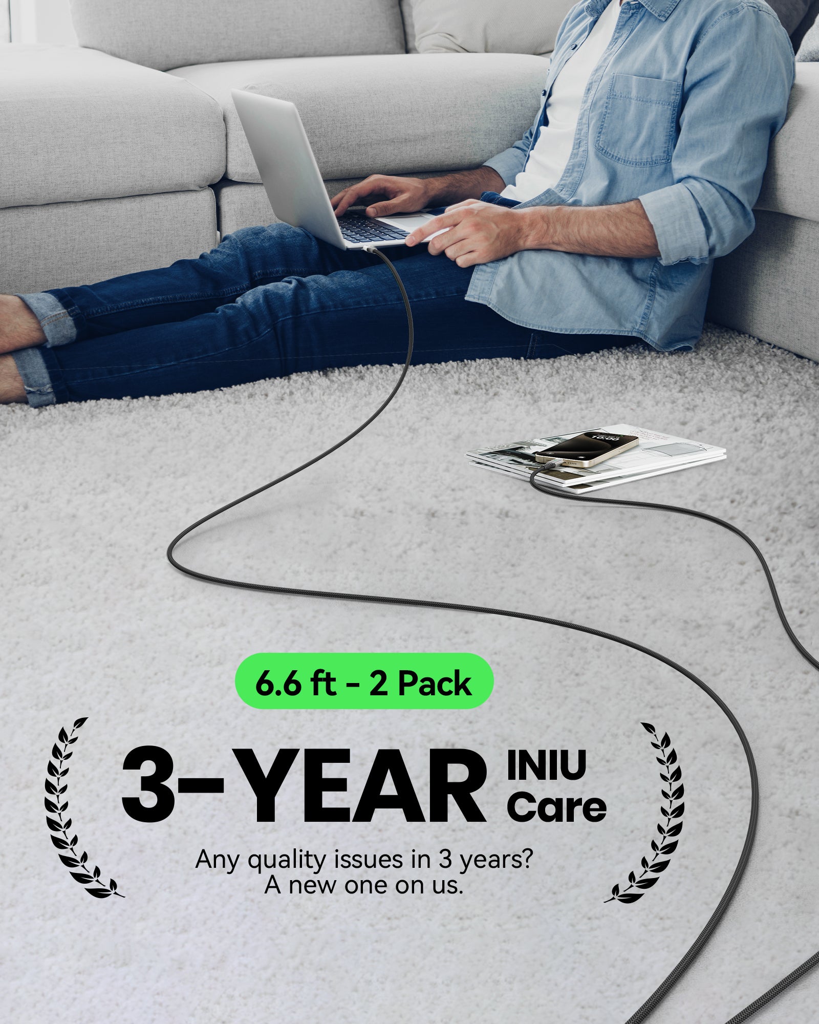 INIU D5CC USB C to C Cable 100W (6.6ft, 2-Pack)