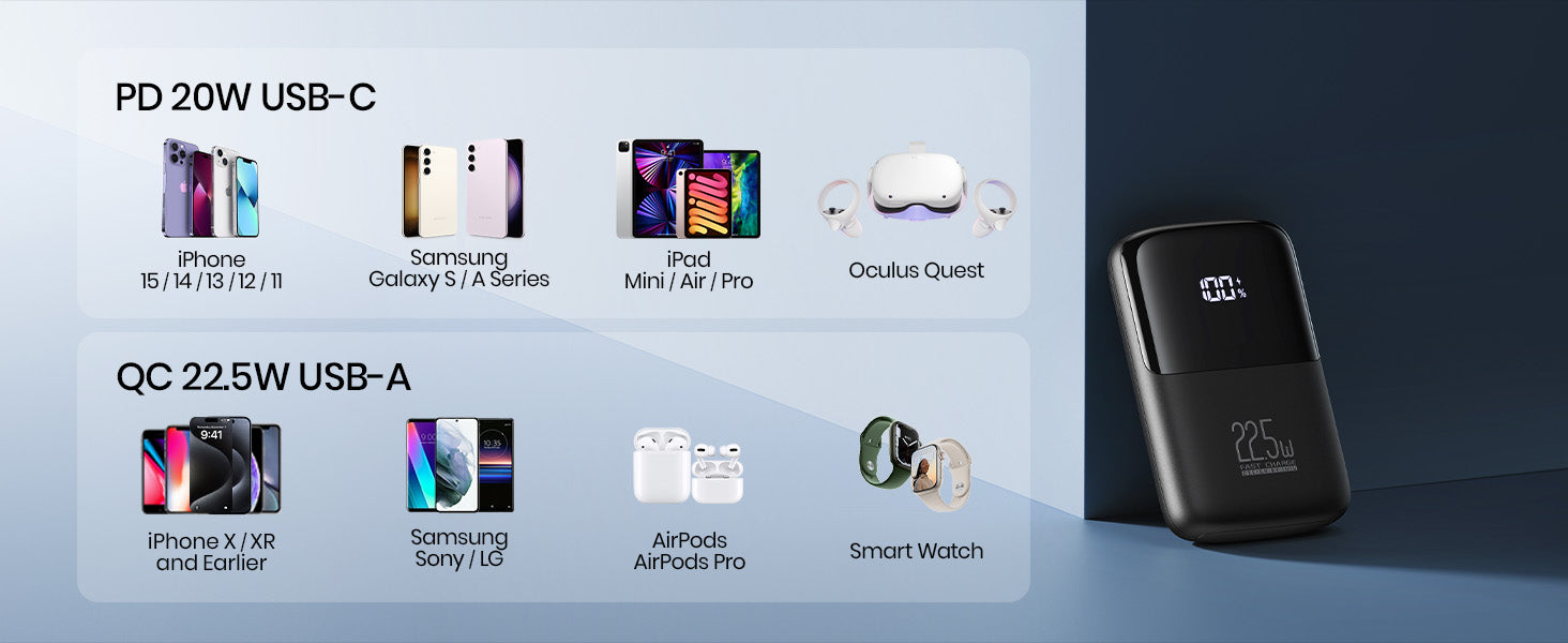 INIU B61 10000mAh, 3-Port Design,Compatible with iPhone 14 13 12 Pro Samsung S21 Google LG iPad Tablet, etc.