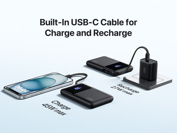Power Bank with Built-in USB-C Cable and Phone Holder