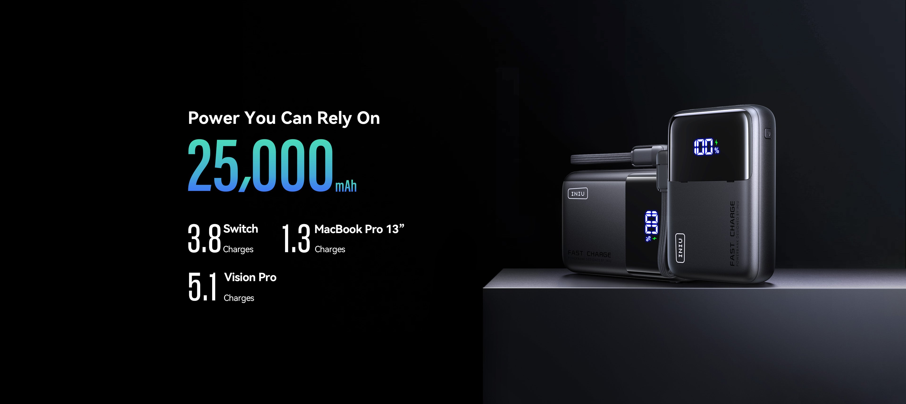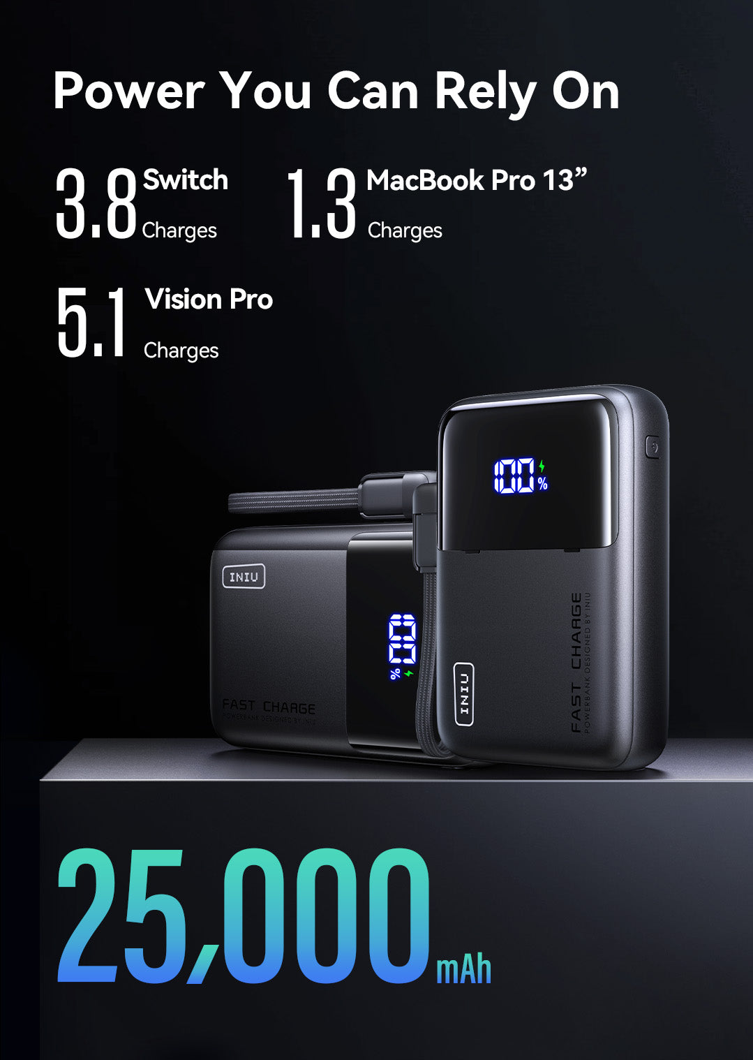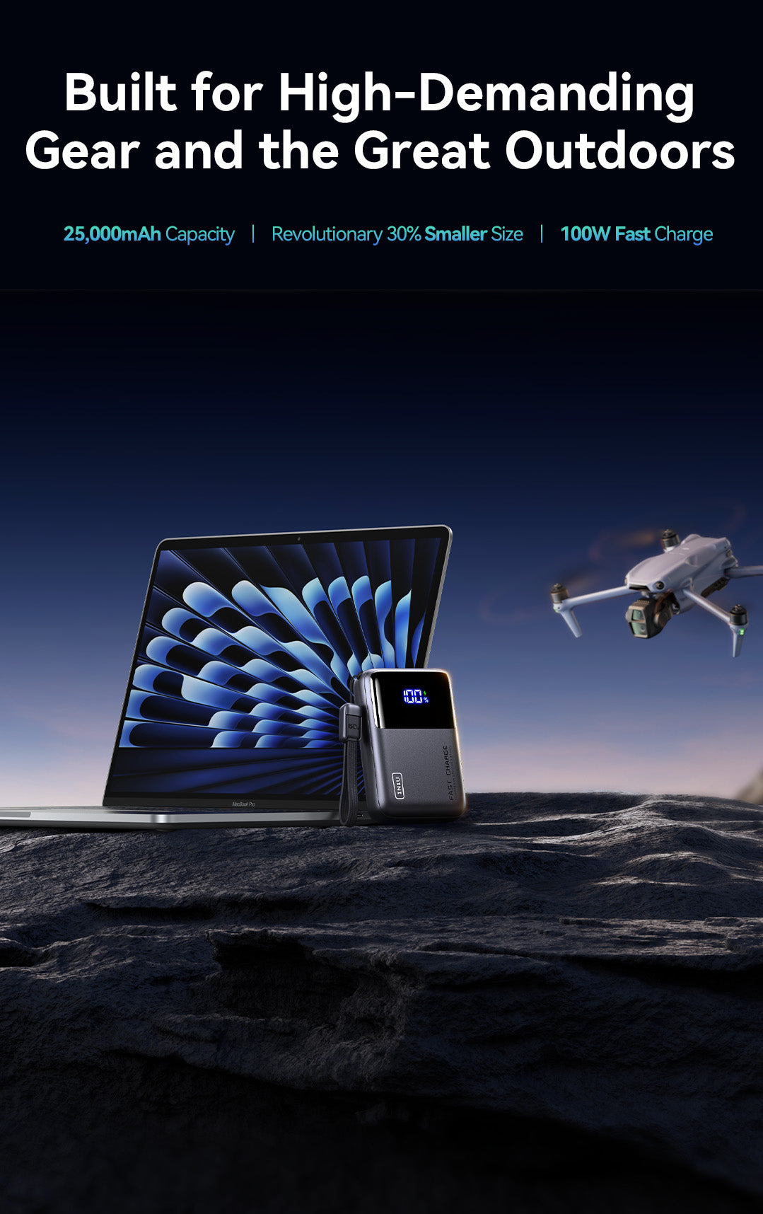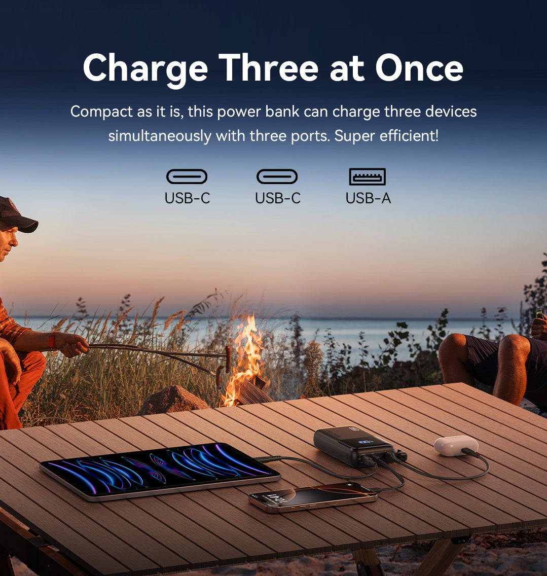 With 25,000mAh of energy in a 30%more compact design, this power bank slips right into your bag, saving space while keeping your devices charged. Plus, it includes a lanyard-integrated USB-C charging cable for ultimate portability.