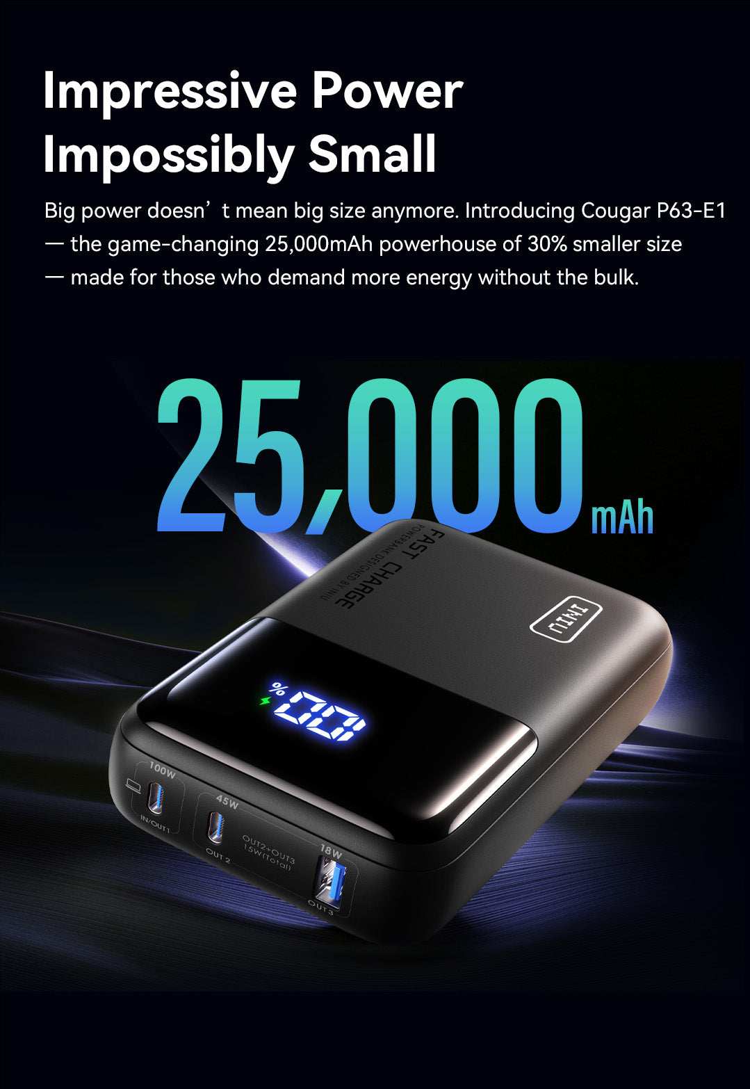 INIU Cougar P63-E1 Power Bank Smallest 100W 25000mAh