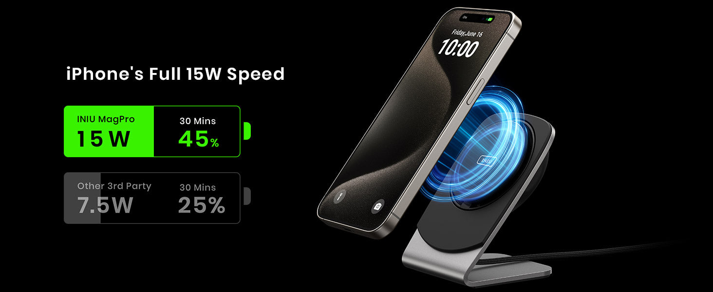 Through-Case Charging: Choose a magnetic phone case to charge seamlessly via mighty magnetic wireless power!