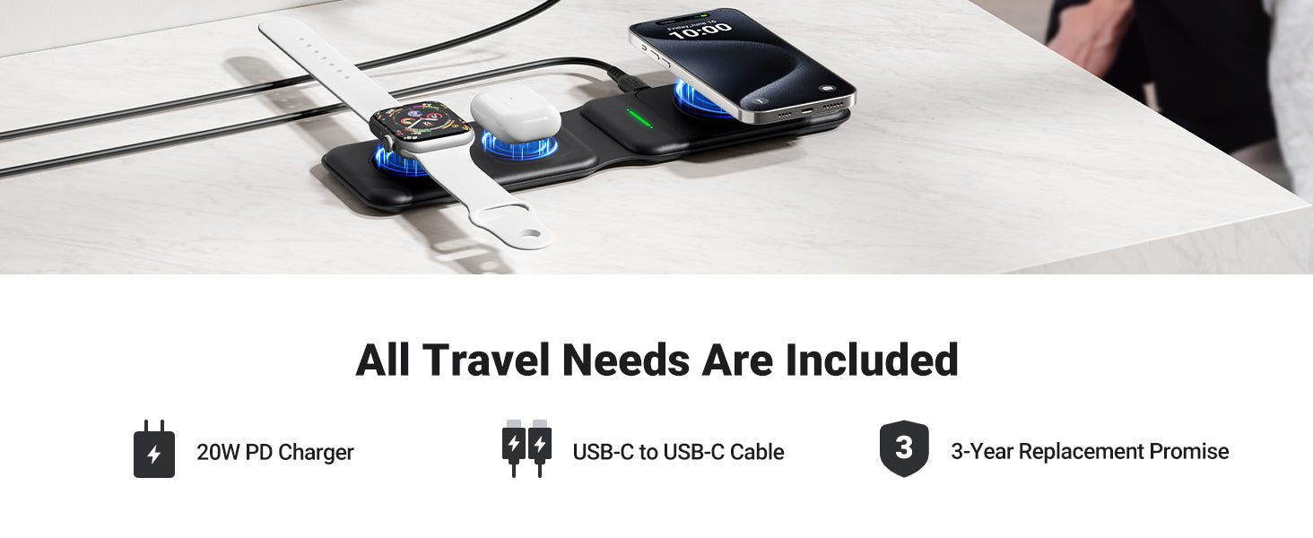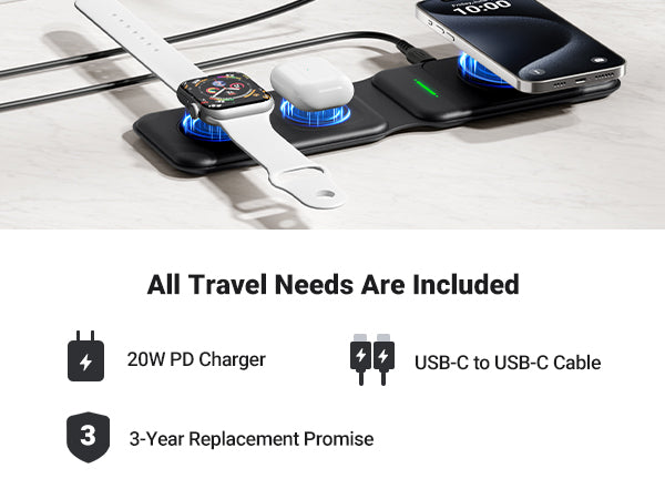 INIU SnapGo WI222 3 in 1 Wireless Charging Pad & Stand, 15W Magnetic Multifunction