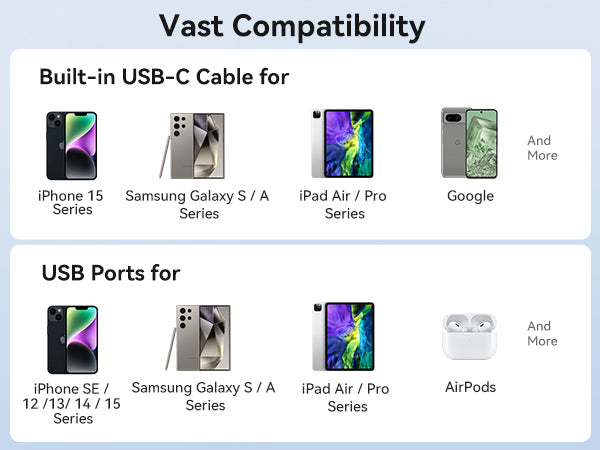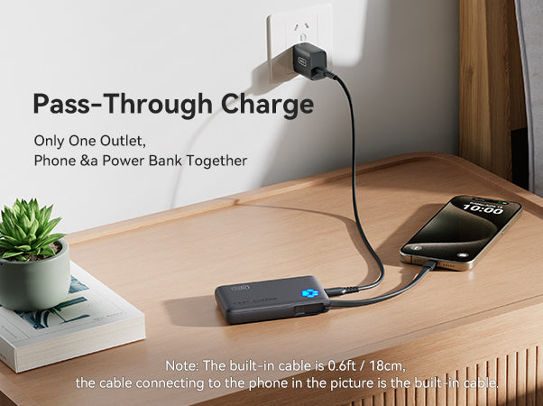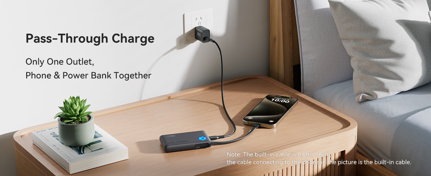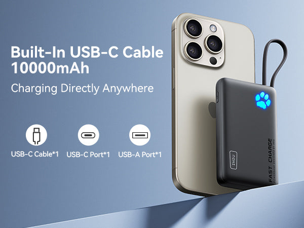 [Grab & Go, No Extra Wires Needed]This 10000mAh power bank features a built-in USB-C cable that charges both your phone and the power bank and doubles as a lanyard. Leave home without extra cables.