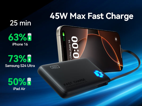 [Charge iPhone 15 to 65% in 25 Mins]With PD 20W fast charging, this power bank charges your iPhone 15 to 65% in just 25 mins, 2X faster than 12W power banks.