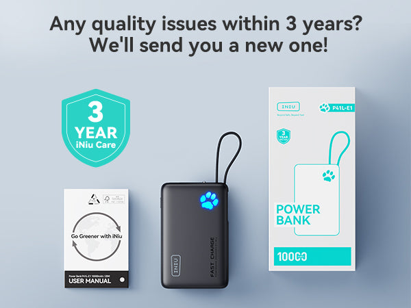 [From INIU- the SAFE Fast Charge Pro]Experience the safest charging with over 38 million global users. At INIU, we use only the highest-grade materials, so we do have the confidence to provide an industry-leading 3-Year iNiu Care.?