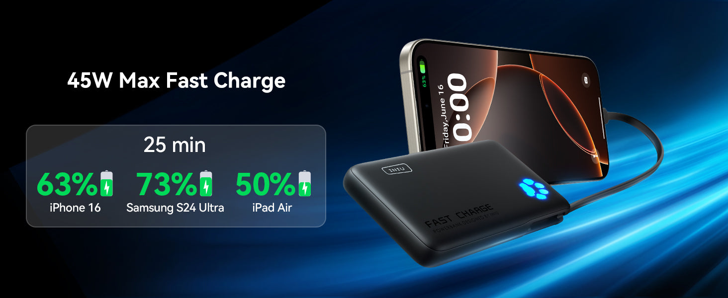 [Stand Out with Every Charge]The unique iNiu Paw Power indicator makes charging fun, allowing you to easily check remaining power in real-time.