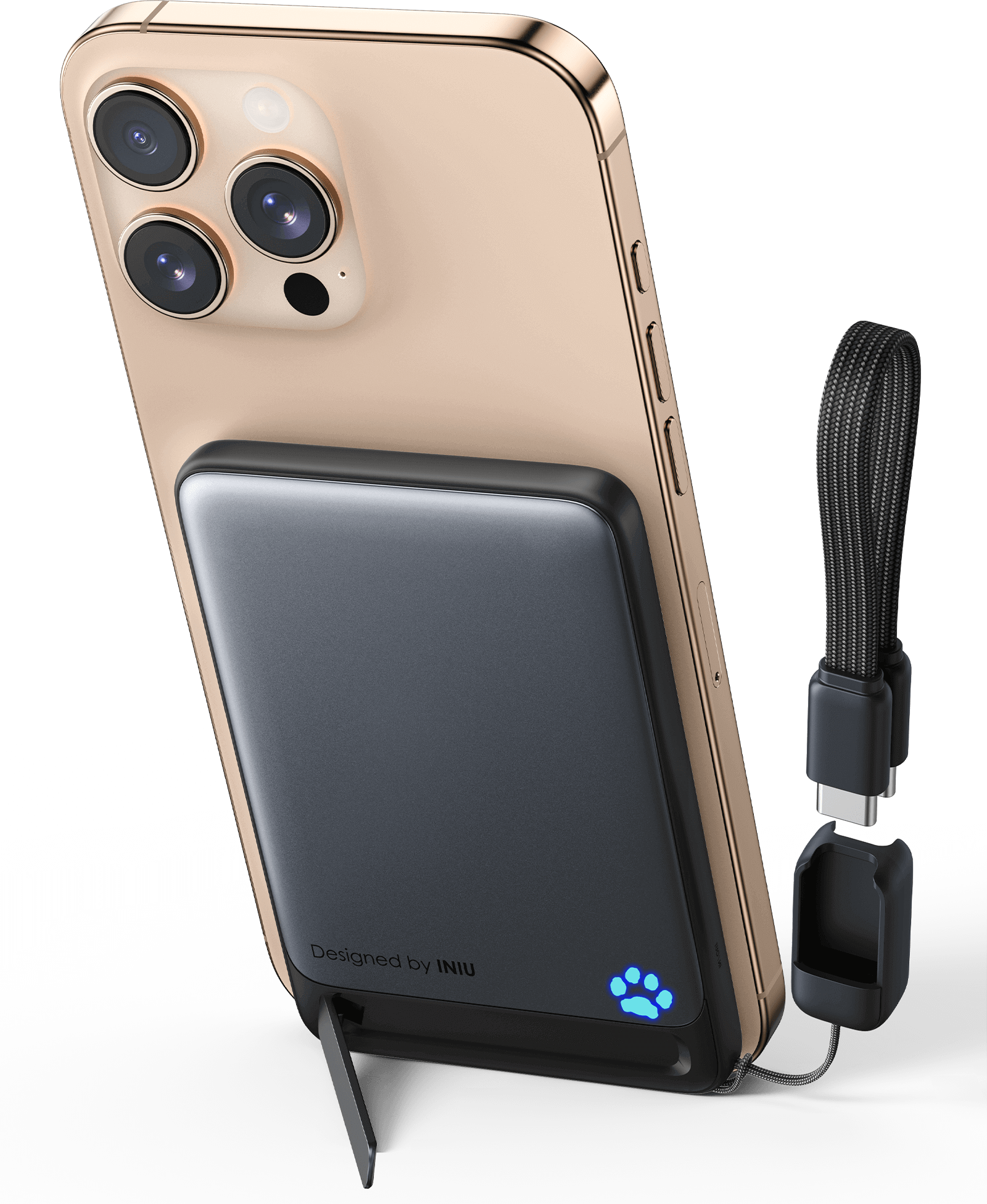 Quickly boost your phone using the included lanyard USB-C cable and a 20W or higher adapter (not included).