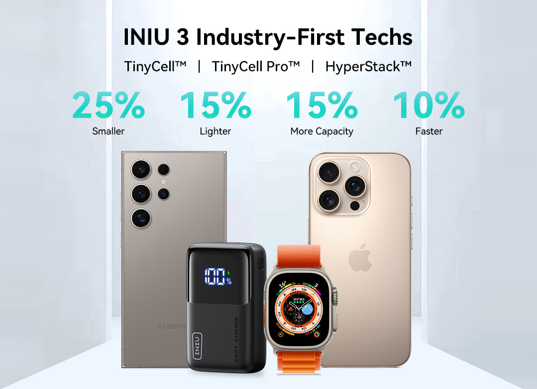 * INIU es la marca de carga portátil N.° 1, según el ranking de los más vendidos de bancos de energía portátiles de Amazon desde octubre de 2023 hasta el presente.