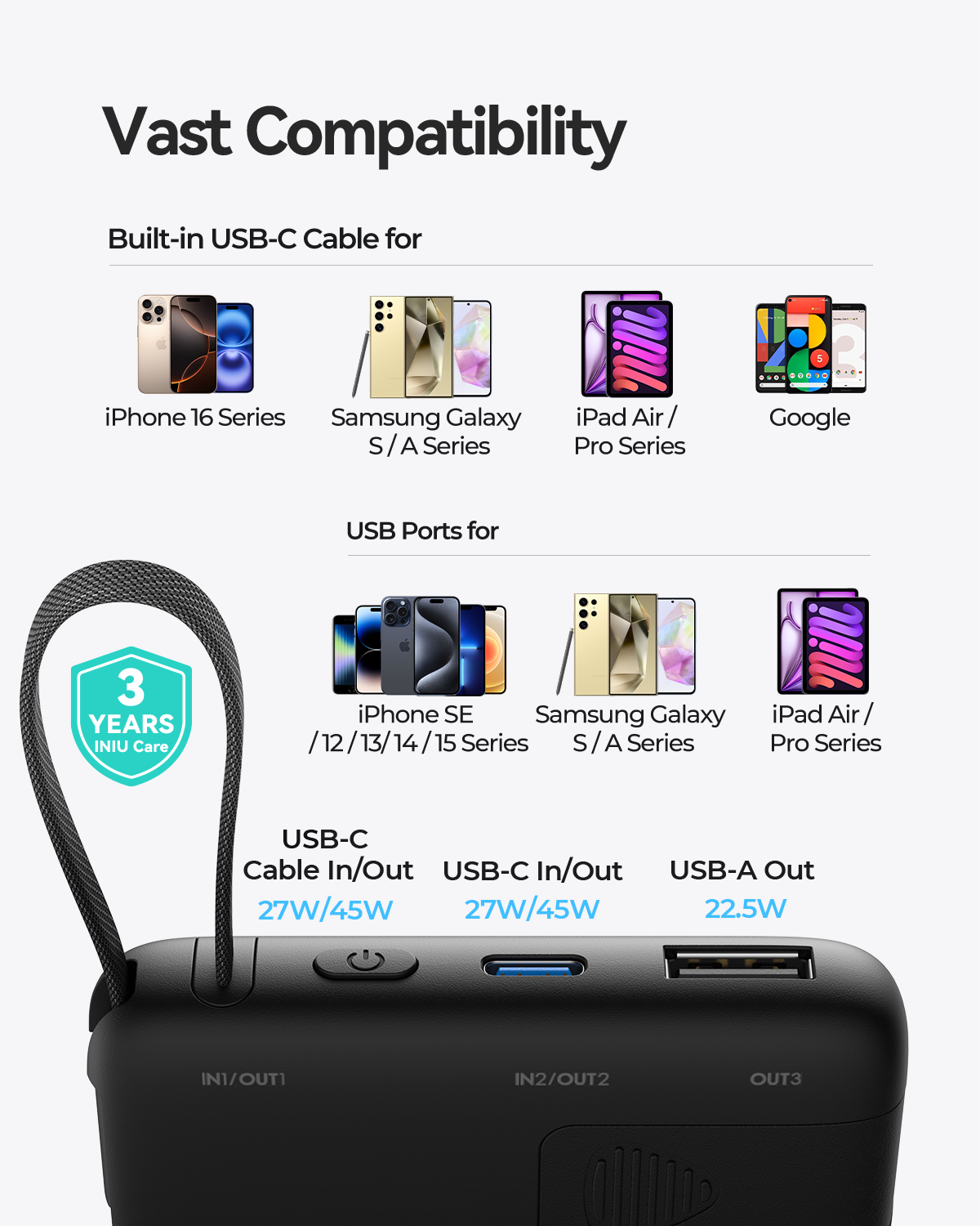 INIU llevar P55L-E2 Banco de energía 45W 10000mAh