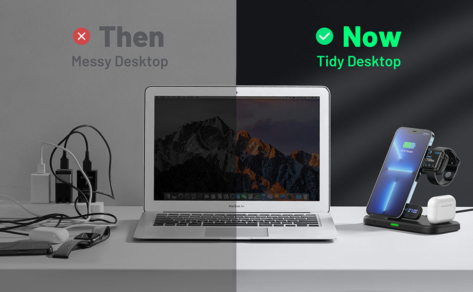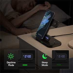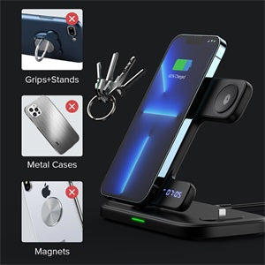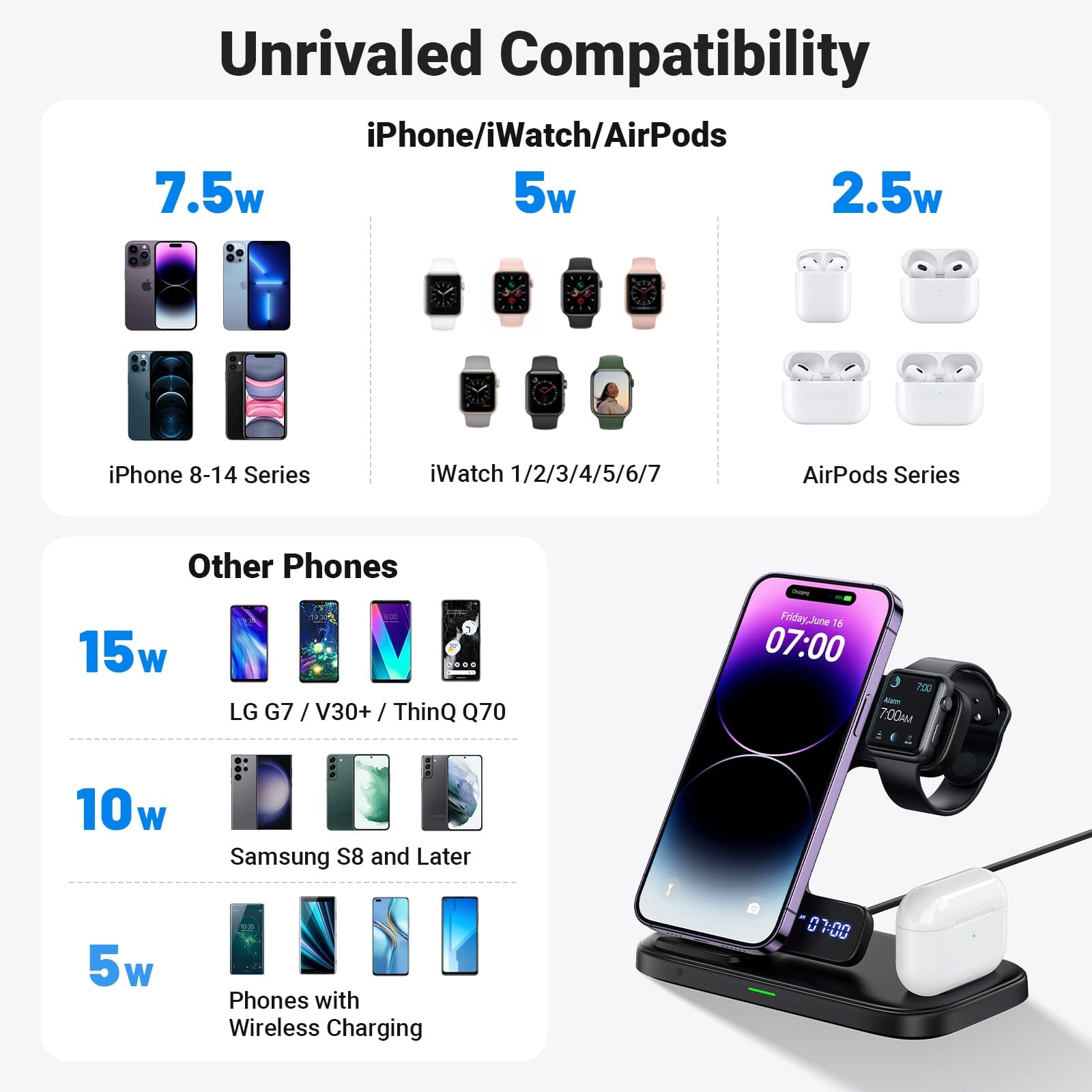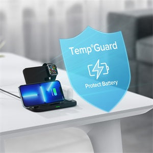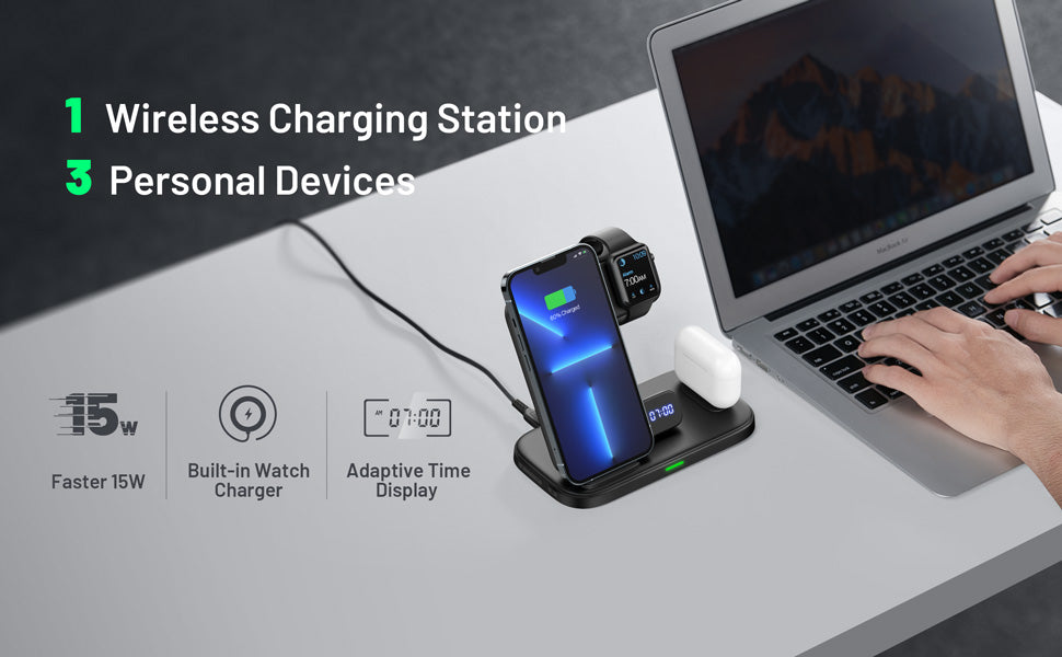 Simplemente coloque sus 3 dispositivos favoritos y la carga rápida máxima de 15W eliminará increíblemente al menos 45 minutos de tiempo de carga del teléfono.