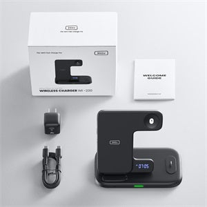 En la caja: cargador inalámbrico INIU AirFuel 3 en 1*1, adaptador de corriente mini USB-C de 25 W*1, cable USB C*1 y manual de usuario*1. ¡Dentro de 3 años, por cualquier problema de calidad, contáctenos directamente y le enviaremos uno nuevo!
