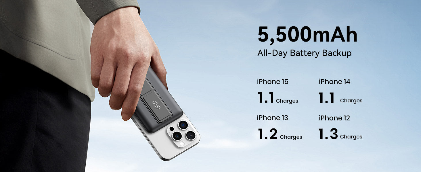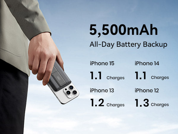 - [Zasilanie na żądanie przez cały dzień] Z imponującą pojemnością 5500 mAh Capacity, możesz liczyć na cały dzień dodatkowej energii dla swojego iPhone'a serii 12-16. Idealne rozwiązanie dla podróżników, poszukiwaczy przygód i tych zabieganych dni, kiedy nie możesz sobie pozwolić na rozstanie z urządzeniem.