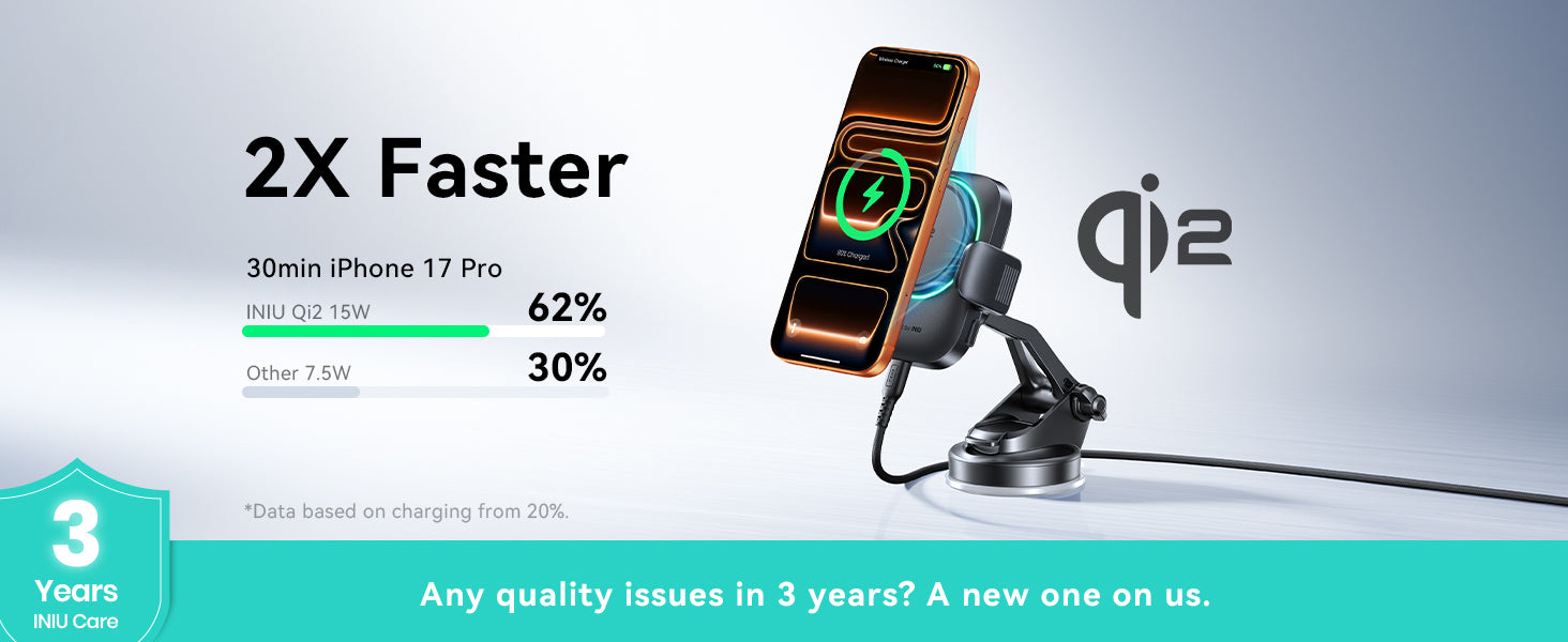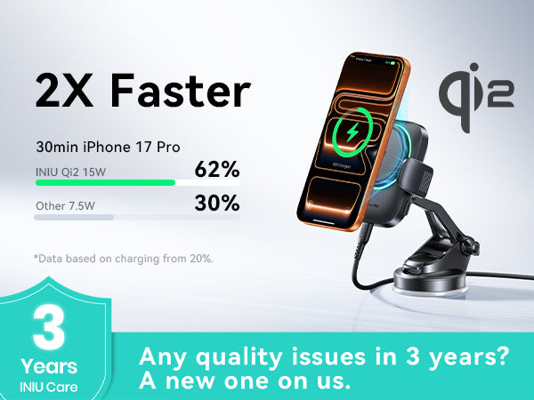 INIU Magnetyczny uchwyt samochodowy do bezprzewodowej ładowarki Qi2 SnapGo V11-E1 15 W