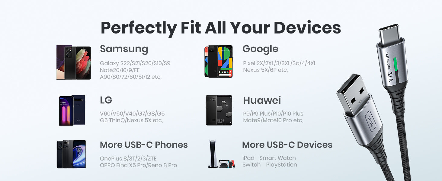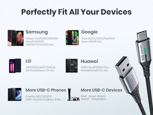 WAŻNY: 1. Wymagana jest oryginalna ładowarka lub szybka ładowarka QC oraz telefon z funkcją szybkiego ładowania. Sam kabel nie zapewnia szybkiego ładowania. 2. Jeśli oryginalny kabel Twojego urządzenia jest USB-C-USB-C, użyj kabla USB-C do szybkiego ładowania.