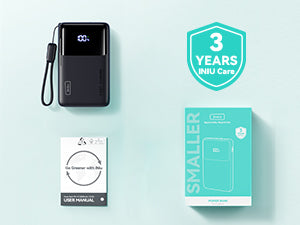 INIU 10000mAh power bank*1, USB C cable*1, user manual*1, INIU industry-leading 3-Year INIU Care.
