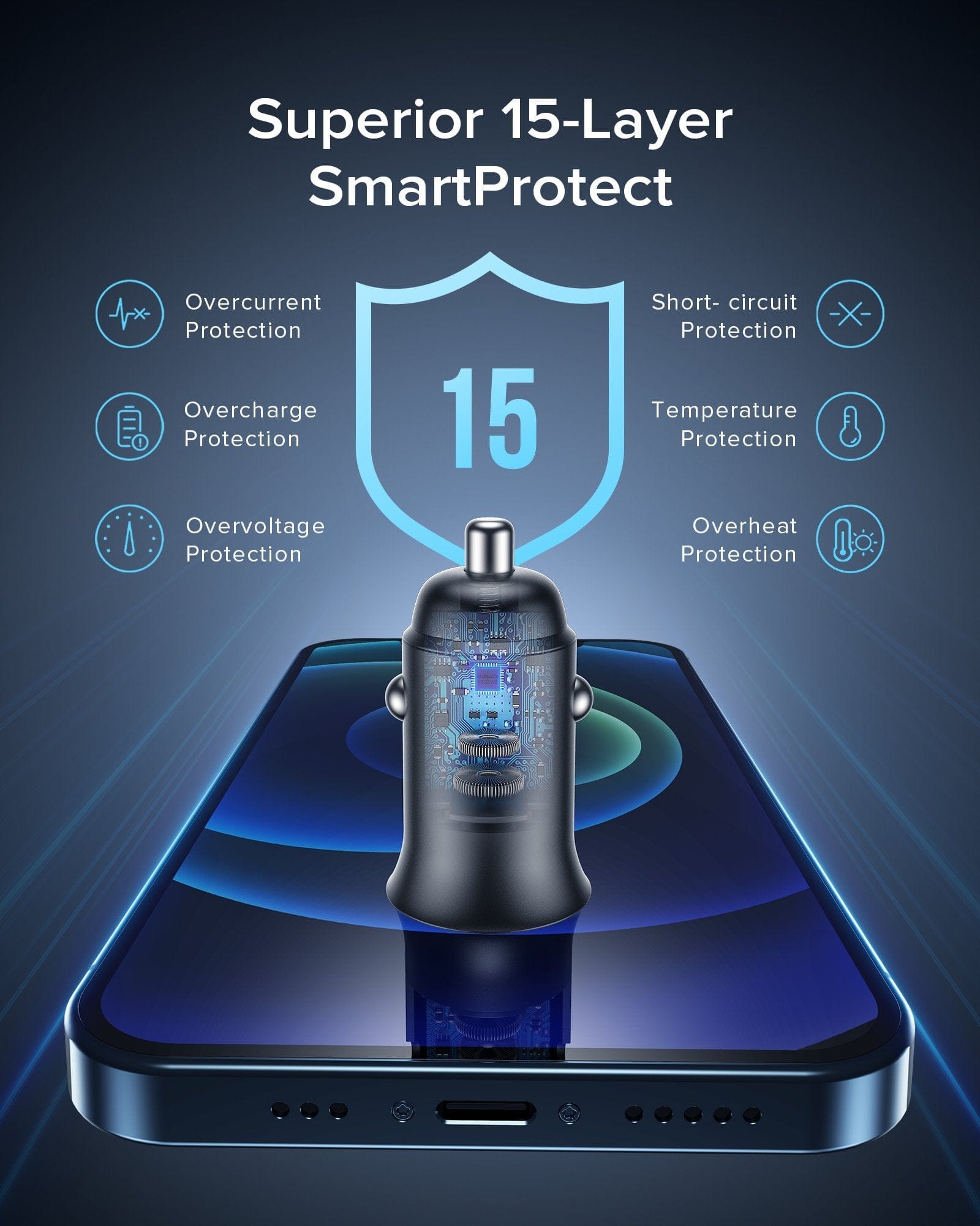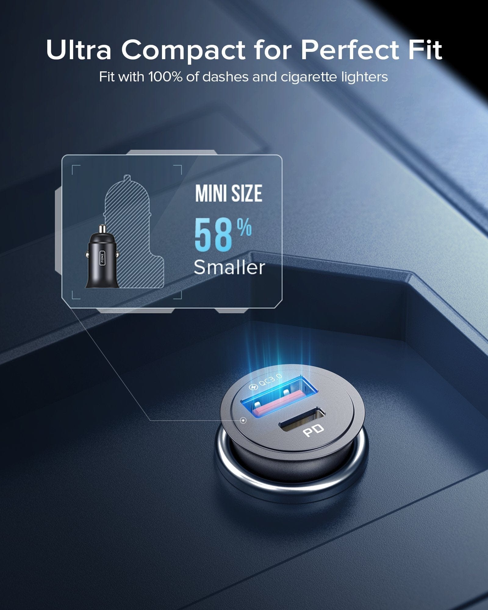 INIU I710 2-Port Fast Car Charger 60W, Compatible with iPhone 14 13 12 Pro Samsung S21 Google LG iPad Tablet, etc.