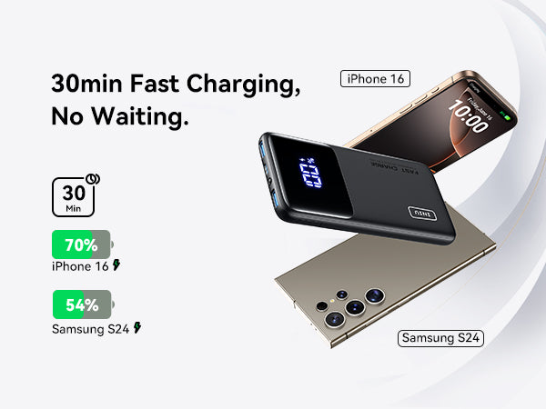- [22.5W Speedy Charge]Combined with the most advanced PD 3.0 & QC4+ fast charging technologies, INIU 22.5W portable charger power bank can incredibly fast fuel your new iPhone from 0 to 65% in 30mins, 2X faster than traditional 2.4A chargers.