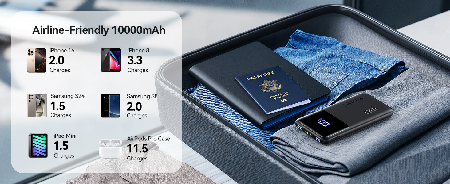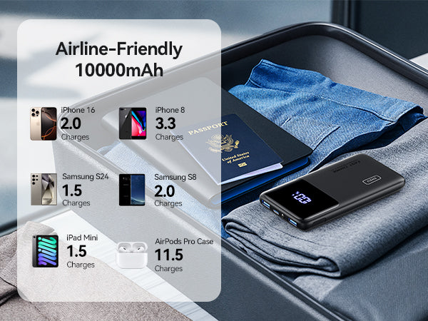 - [Power for Weeks]The slim but powerful INIU 10,000mAh portable charger can provide Samsung S8 with 2.0 charges, iPhone 8 with 3.3 charges, AirPods Pro MagSafe Case with 11.5 charges, and iPad mini with 1.6 charges.