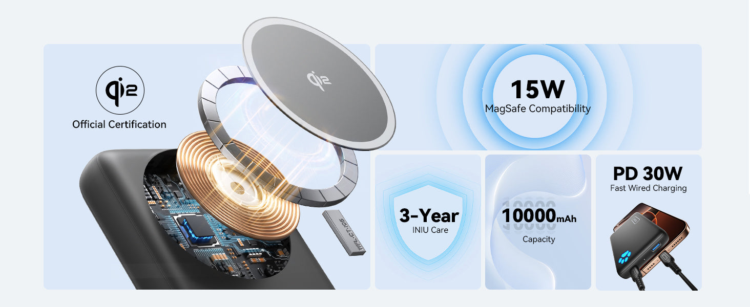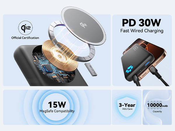 • [What You Get] INIU 10000mAh magnetic power bank*1, 11.8-inch (30cm) USB-C cable*1, travel pouch*1, user manual*1, and INIU industry-leading 3-year care and lifetime technical support.