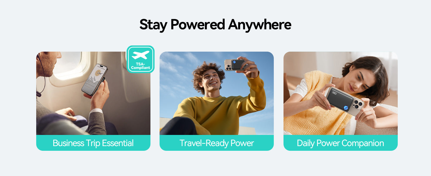• [TSA-Compliant Portability] This compact power bank fits easily in your bag, keeping you powered on air travel, business trips, and daily commutes.