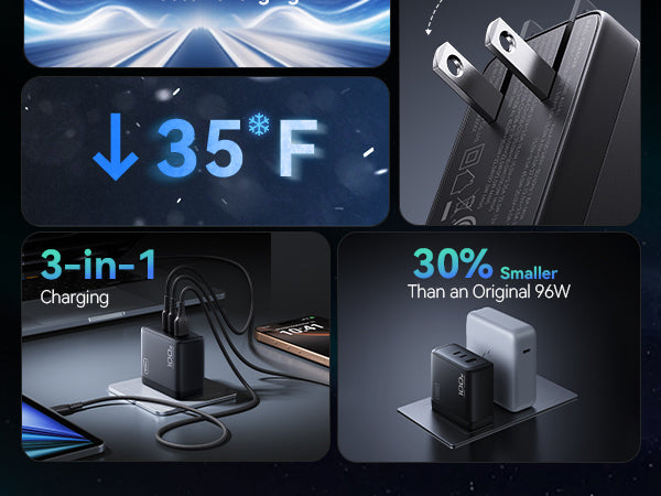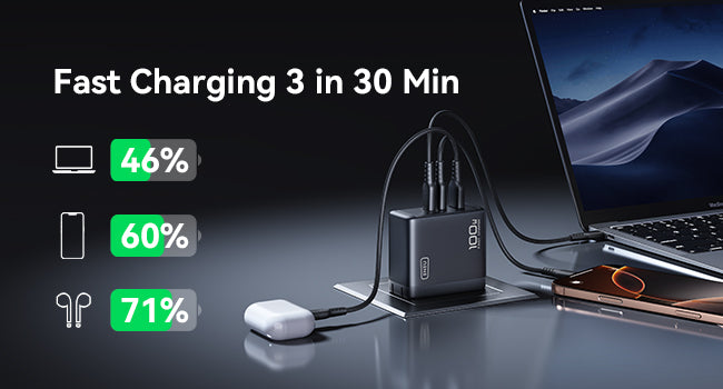 C1 (45W)、C2 (30W)、A (18W):快速充電筆記型電腦、手機等。 *透過 MacBook Air 13、iPhone 16 Pro Max 和 AirPods 進行測試。