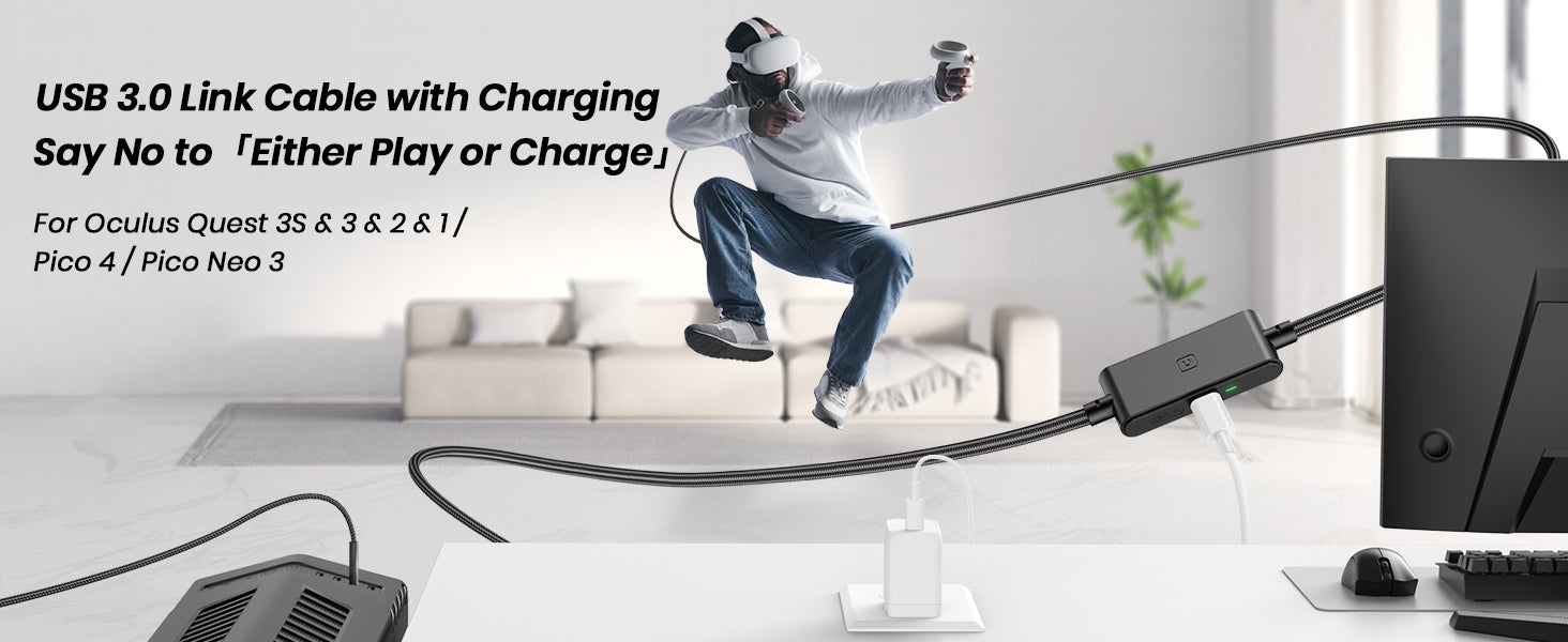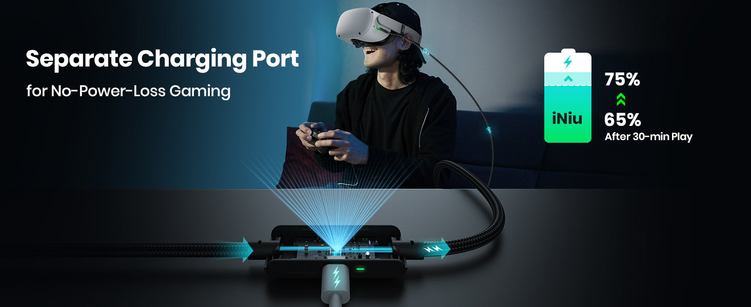INIU DI401 16英尺 VR 高速連接線,帶充電端口