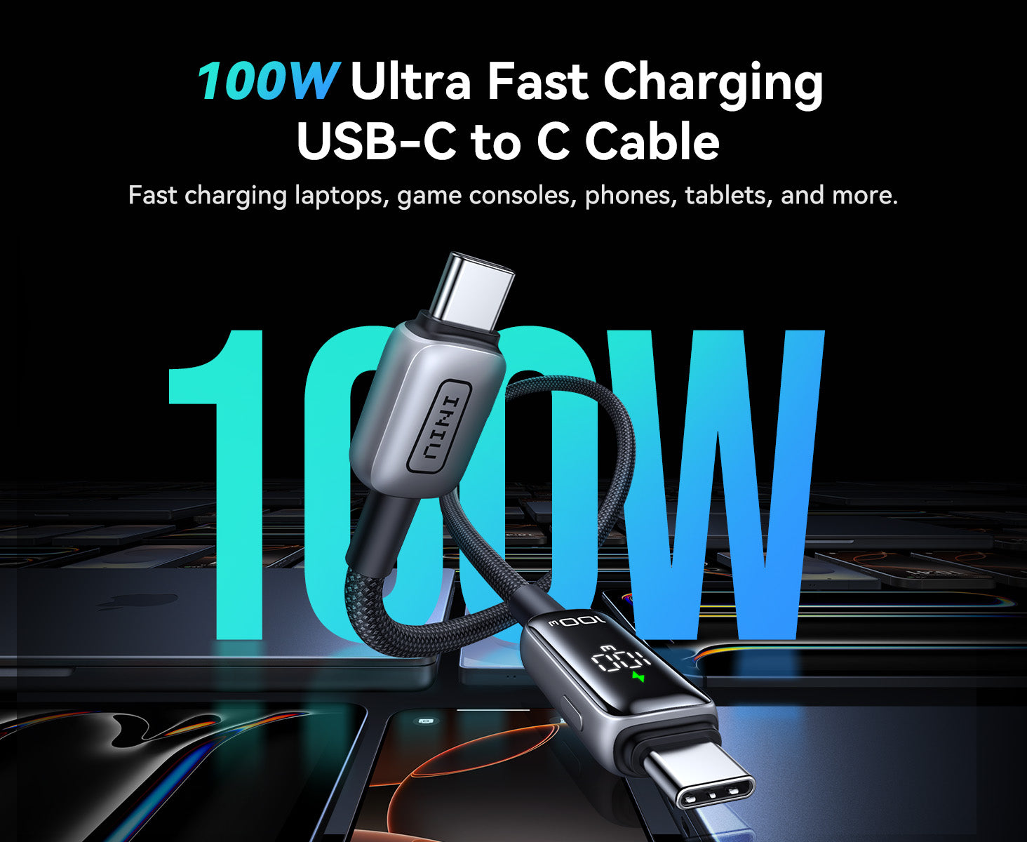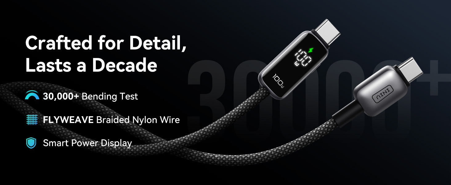 INIU 數位顯示器 USB-C 轉 USB-C 線(100W,6.6 英尺)