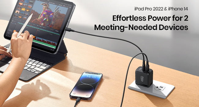 - [USB-C 和 USB-A 快速同時填充 2 個]永遠不必擔心新設備沒有足夠的充電埠。智慧地分配電力,為您最需要的 2 台設備高速充電 - 為 2 台設備充電最多可節省 1 小時。 (1 個連接埠:USB-C=45W(最大)或 USB-A=18W(最大),2 個連接埠:USB-C + USB-A=30W+12W)