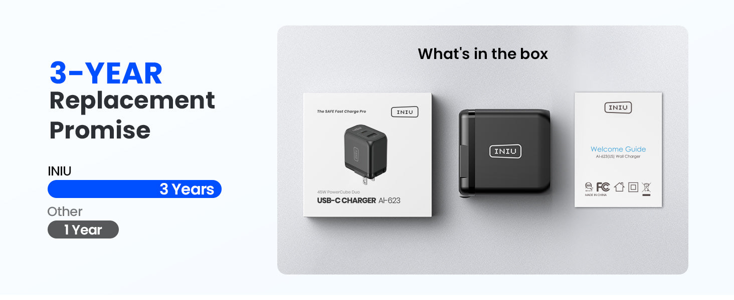 - [來自 INIU — SAFE 快速充電專業版]與全球超過 3800 萬用戶一起體驗最安全的充電。在 INIU,我們只使用高品質的材料,我們有信心向您保證——3 年內,如果您的商品有任何品質問題,我們將向您寄送新品!
