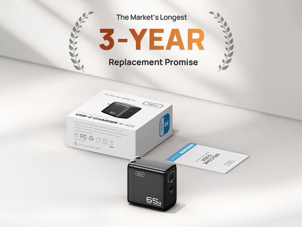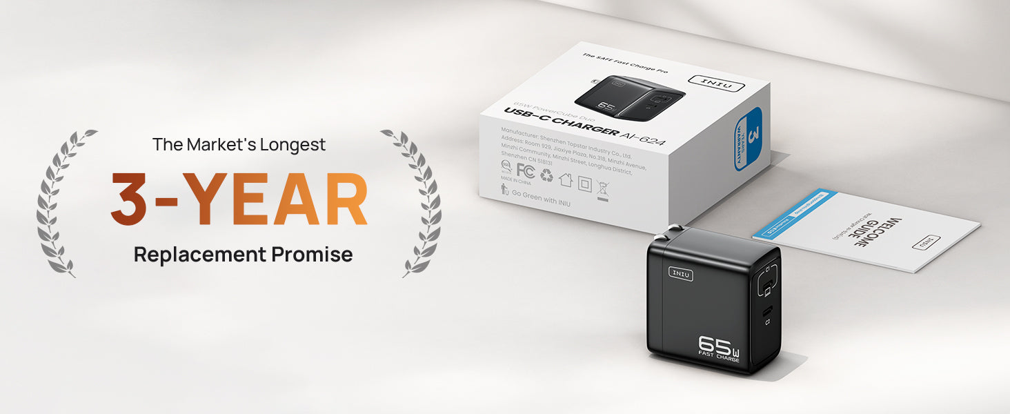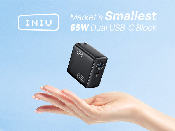 - [您將獲得] 65W 雙 USB-C 連接埠充電器*1、使用手冊*1、業界領先的 3 年 INIU 保固和終身技術支援。