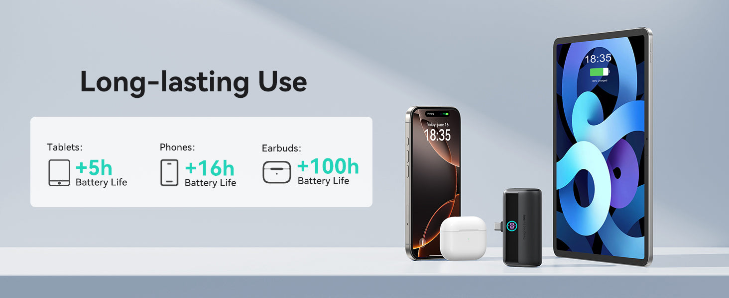 5500mAh 電池可提供一天的電量:5500mAh 電池可為您一整天提供電力 - 非常適合一整天的工作、娛樂和一切活動。再也不用擔心電量不足了!